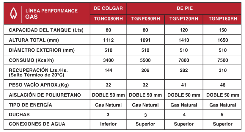 -Alta eficiencia energética-Conservan mas tiempo el agua caliente encendiendo menos veces-Máxima protección y duración-Doble aislación de poliuretano-Esmalte porcelanizado Bi-Capa-Válvulas de gas de gran precisión-Apto bomba-Clase energética A